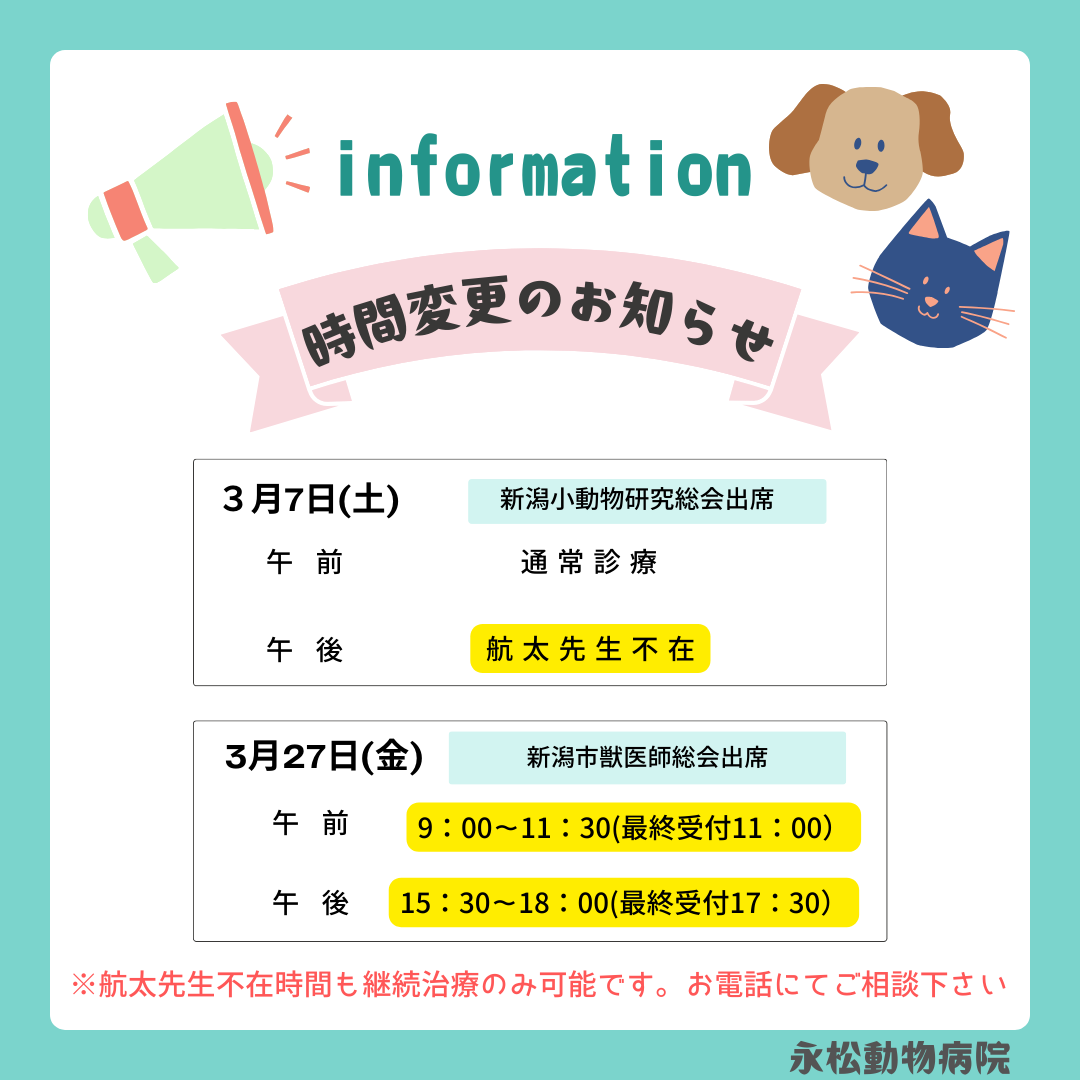 3月時間変更のお知らせ